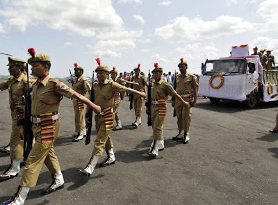 PM Manmohan Singh pays last respects to Dorjee Khandu at Itanagar.